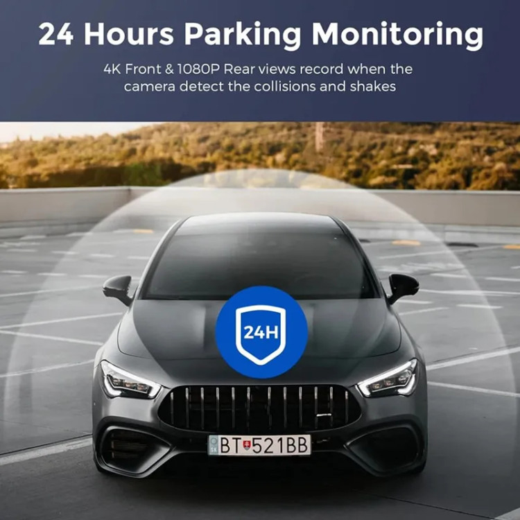 این دوربین داشبورد دارای مانیتور پارکینگ ۲۴ ساعته است که در صورت تشخیص برخورد، بهصورت خودکار شروع به ضبط میکند. اتصال یکپارچه بین ویدئوهای حلقهای، شواهد تصویری بهتری را تضمین میکند. همچنین، هنگام قرارگیری در دنده عقب، صفحهنمایش بهطور کامل تصویر دوربین عقب را نشان میدهد تا پارک کردن راحتتر شود.