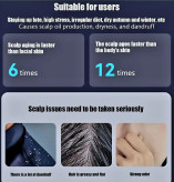 ● ماساژ تسکین دهنده پوست سر : دندانه های دایره ای شکل محصول برای ماساژ پوست سر در هنگام رفع شوره طراحی شده این ماساژ نه تنها گردش خون را بهبود می بخشد بلکه به تسکین خارش و سلامت کلی پوست و رفع ریزش مو کمک می کند