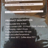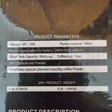 متاسفانه این کالا در حال حاضر موجود نیست. میتوانید از طریق لیست بالای صفحه، از محصولات مشابه این کالا دیدن نمایید.شارژی.قابلیت جوش آوردن آب تا ۸۵ درجه.کارکرد با پودر قهوه و قرص قهوه.۱۸ بار واقعی.بسیار با کیفیت